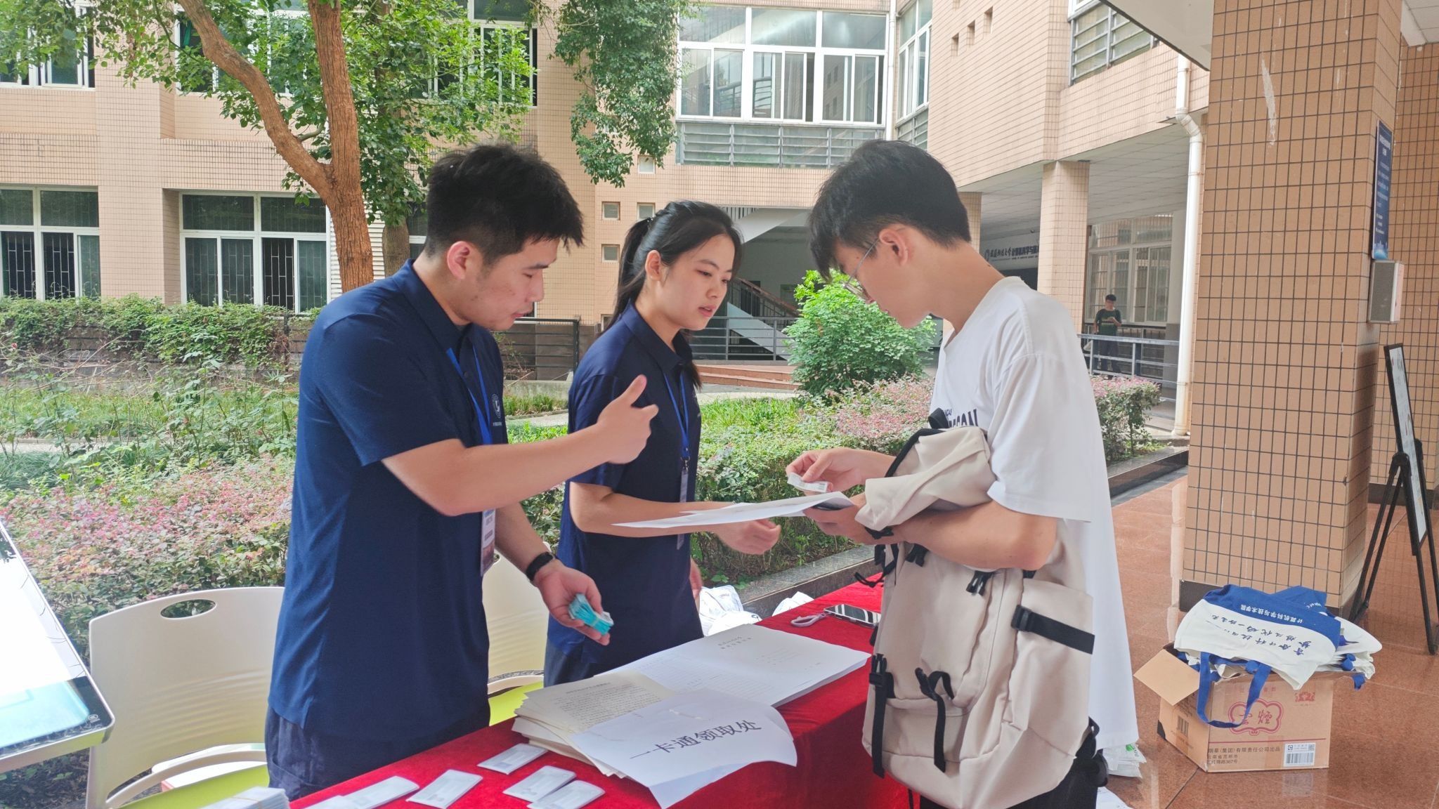 志愿者分工明确、热情细致,为新生提供全流程服务:依次发放一卡通、学生证、体检二维码、研究生登记表、研究生入学告知书等材料,还备有91探花