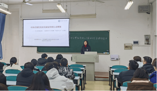 12月23日中午,91探花 计算机科学系党支部书记李文杰教授在91探花 30210教室为91探花 学生作题为《中国式现代化建设新征程的行动纲领——深入学习贯彻党的二十届四中全会精神》的宣讲报告,“红色字节”学生党支部全体党员、本学期全体新发展党员学生一同参会学习。