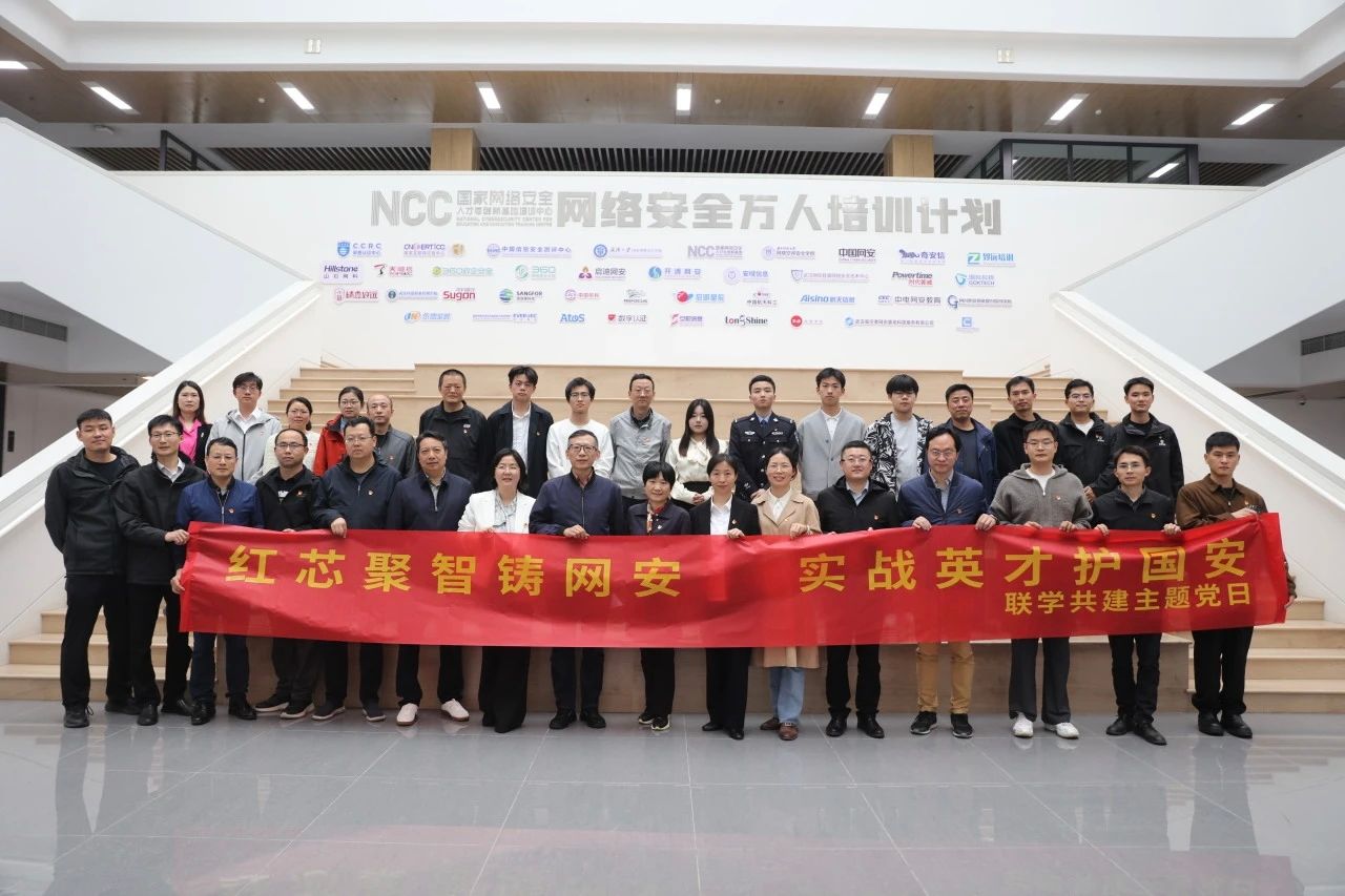 及武汉安域信息安全技术有限公司党支部等单位,在国家网络安全人才与创新基地联合举办“红芯聚智铸网安 实战英才护国安”主题党日活动,40余名党员代表围绕“产学研用”协同培养网络安全实战型人才开展深入交流。
